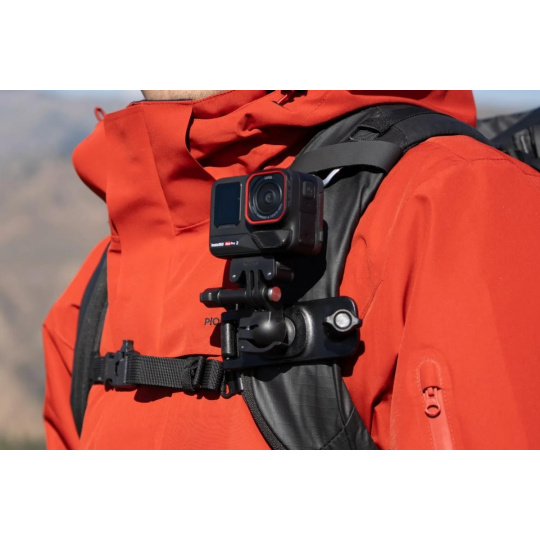 Připevněte kameru na popruh batohu pro hands-free záběry z pohledu první osoby. Ideální pro turistiku a outdoorové aktivity. Pevné uchycení bez prokluzu, odnímatelná kulová hlava s 360° rotací pro snadné přepínání orientace. Zaoblené hrany pro pohodlí. Kompatibilní s popruhy do šířky 7 cm. Kompatibilní s Insta360 Ace Pro 2, GO 3S, X5/ X4/ X3/ ONE X2, Insta360 Ace Pro, Insta360 Ace, GO 3..