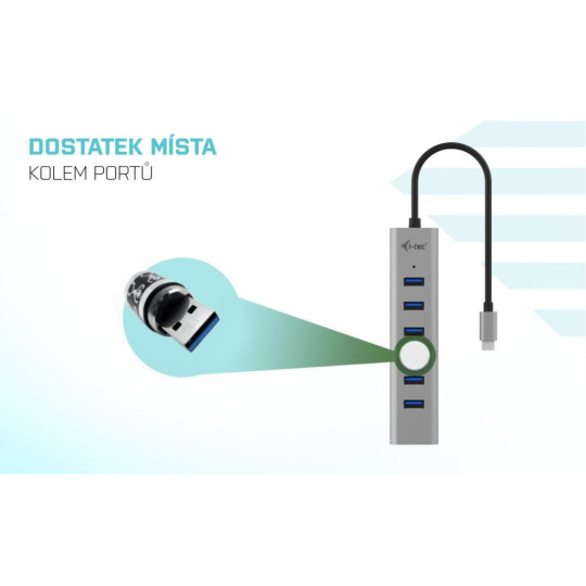 - 1x USB-C port k připojení přídavného napájení hubu až 15W (5V 3A)