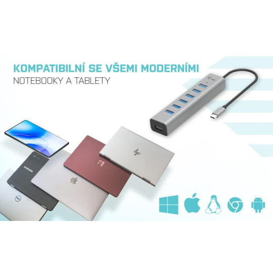- HUB podporuje všechny běžné současné operační systémy (Windows, macOS, Linux, Android, Chrome OS, iPadOS)