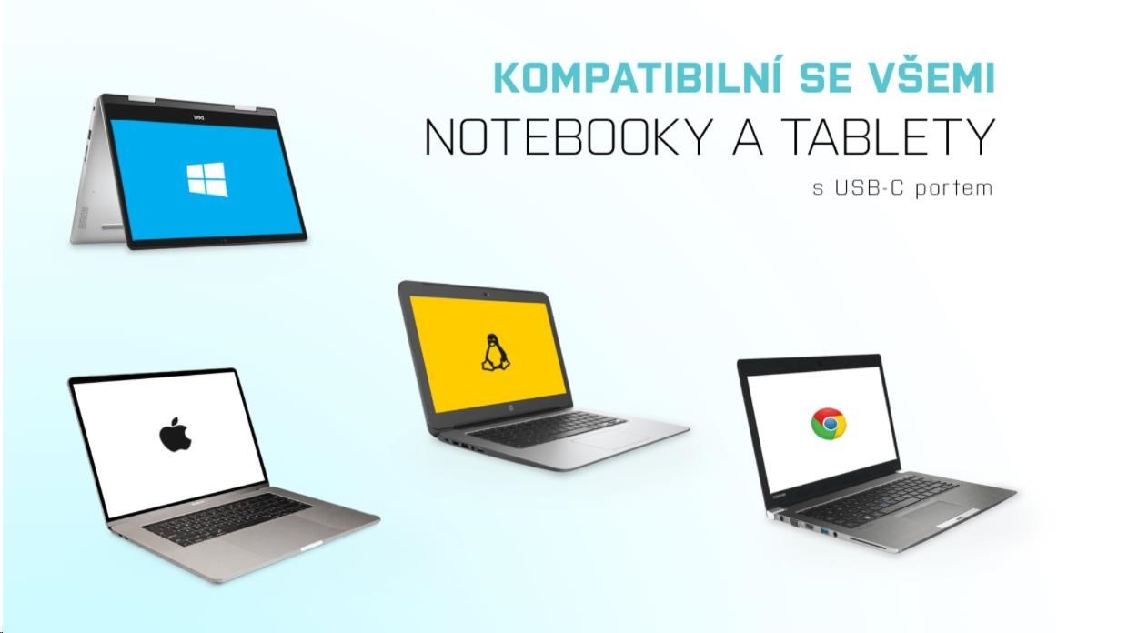 1x integrovaný USB-C kabel pro připojení k zařízení (30 cm)