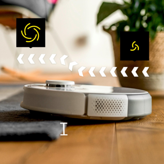 Díky rychlé a robustní navigaci LiDAR robot přesně skenuje a mapuje místnosti a zajišťuje nejlepší orientaci pro spolehlivý úklid i ve tmě. Díky dvojitému laserovému senzoru a kameře na robotu dokáže rozpoznat i malé nebo ploché předměty, které jsou pro systém LiDAR příliš malé (např. boty, ponožky nebo kabely). Pokud systém s dvojitou laserovou kamerou rozpozná překážky, zapracuje je do mapy. Robot je inteligentním navigačním manévrem objede a vyhne se uvíznutí nebo poškození.