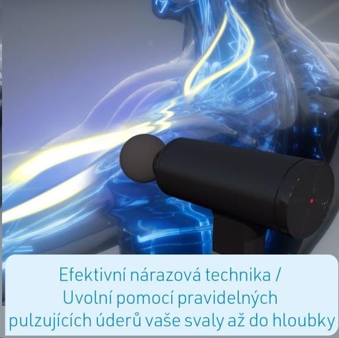 -Efektivní technika perkusí - uvolní vaše hluboké svaly rovnoměrně pulzujícími rázy