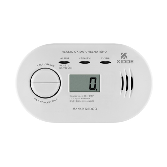 1x detektor oxidu uhelnatého s LCD displejem - model Kidde K5DCO