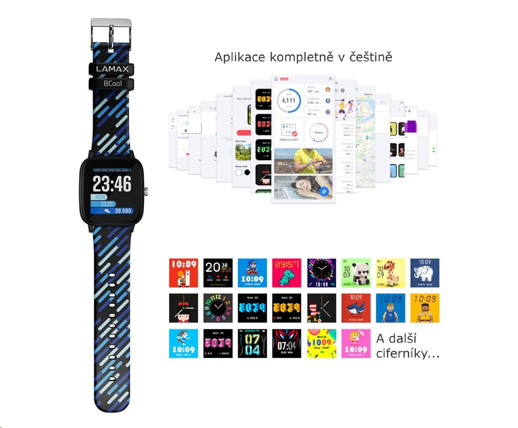 Sport a zábava na zápěstíChytré hodinky LAMAX BCool se stanou nejlepším parťákem vašeho potomka. Parádním designem ohromí všechny kámoše, postarají se o ovládání hudby a zajistí, že dítě bude vědět o všem důležitém i ve chvíli, kdy je lepší nechat telefon v tašce. Motivujte své ratolesti k pohybu a odměňte je za splněné výzvy – hodinky jim spočítají celodenní aktivitu a změří tep nebo spánek. S dvěma barevnými řemínky v balení a týdenní výdrží na baterku nešlápnete vedle.