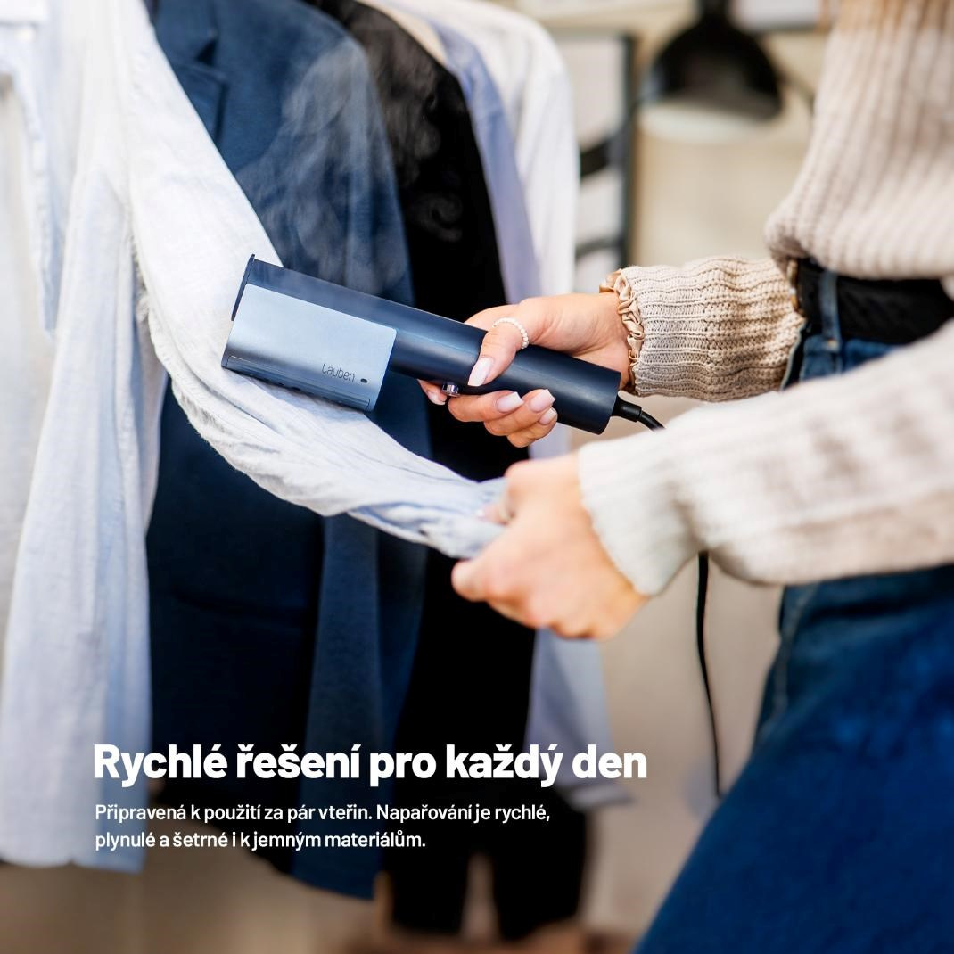 Lauben Handheld Steam Iron 900GB je lehká a spolehlivá napařovačka, se kterou bude vaše oblečení vždy perfektně upravené – snadno, rychle a bez zbytečného čekání. Kombinace vysokého výkonu a kompaktních rozměrů z ní dělá ideálního pomocníka doma i na cestách. Díky výkonu 800 W si hravě poradí i s odolnými záhyby. Napařovačka je připravena k použití už za 15 sekund, což oceníte zejména při rychlých úpravách těsně před odchodem z domu. Intenzivní parní výkon 9 g za minutu proniká hluboko do vláken, efektivně vyhlazuje tkaniny a zároveň je osvěžuje. Pára navíc pomáhá eliminovat nepříjemné pachy a bakterie. Výsledkem je hladké, svěží a dokonale upravené oblečení. Celkový dojem z používání umocňuje elegantní minimalistický design. Jeho vizuální čistota a funkční jednoduchost zaujaly i porotu prestižních ocenění iF DESIGN AWARD a Red Dot Design Award.