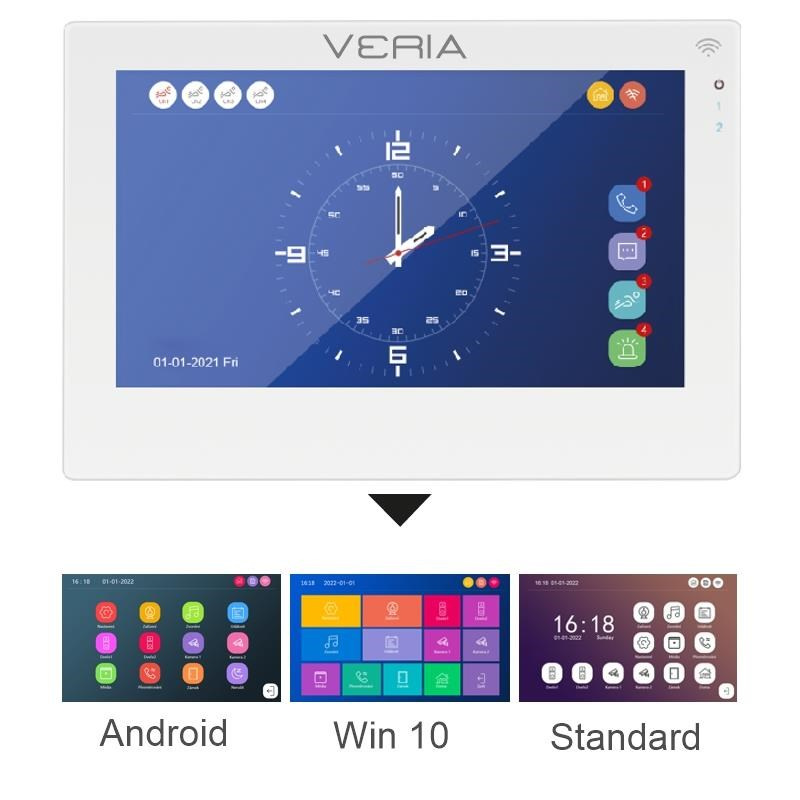 Monitor VERIA 3001-W je plně dotykový barevný LCD panel a nabízí uživatelsky snadné ovládání a nastavování. Umožňuje měnit vzhled menu na styly android nebo windows, v klidovém režimu může znázorňovat hodiny, nebo zobrazovat snímky uložené na SD kartě a zpříjemnit vám tak čas vzpomínkami.