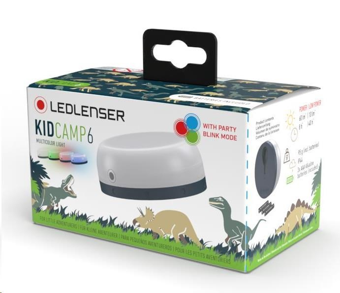 LEDLENSER KIDCAMP 6 je malá kapesní lucerna přizpůsobená speciálně pro citlivé dětské oči a dětské zacházení. Světlo je vhodné do stanů, karavanů, ale i do dětských pokojíků – zkrátka všude, kde je potřeba osvítit prostor příjemným neoslňujícím světlem. Svítilna je vybavena vestavěným hákem pro snadné uchycení. Možnost volby ze čtyř barev světla a funkce blikání navíc rozzáří každou dětskou oslavu.