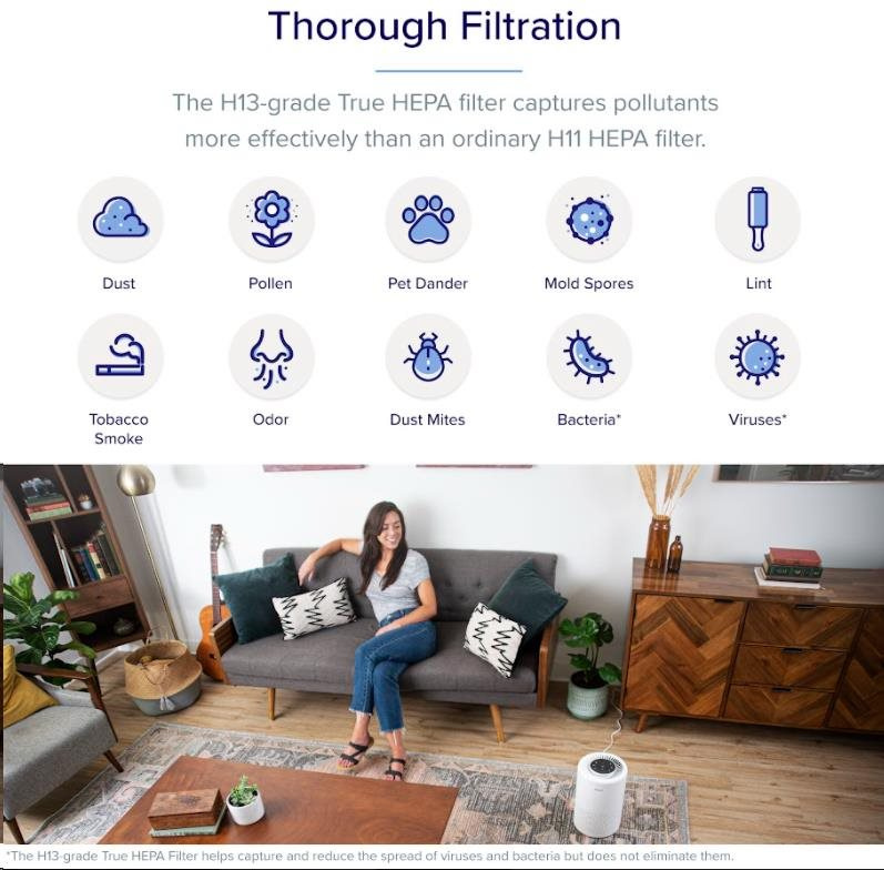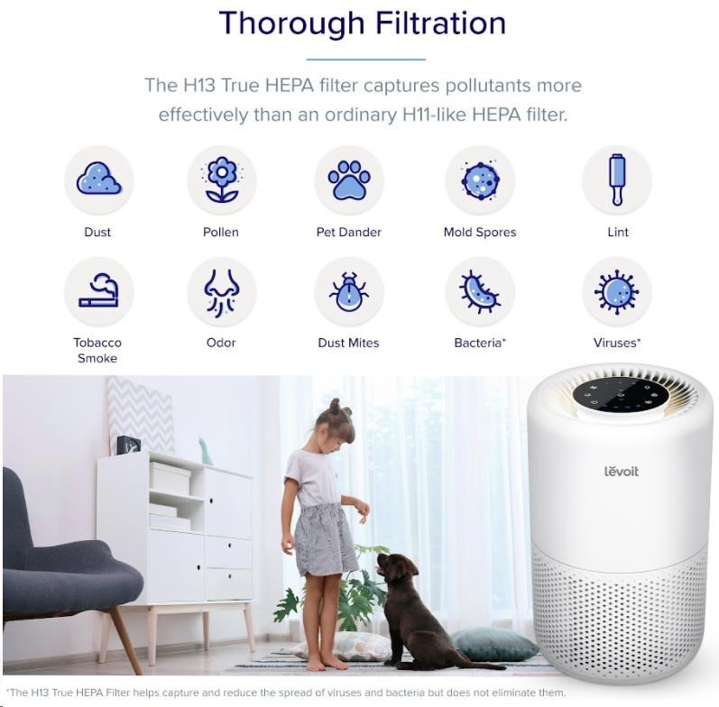 Druhou vrstvou je HEPA filtr H13. To odlišuje Levoit od konkurence, protože filtr HEPA H13 je mnohem kvalitnější a spolehlivější než běžně používané HEPA H11. Tu se odfiltrují jemné prachové částice, plíseň, bakterie, pyl, kouřové částice, roztoče a srst.