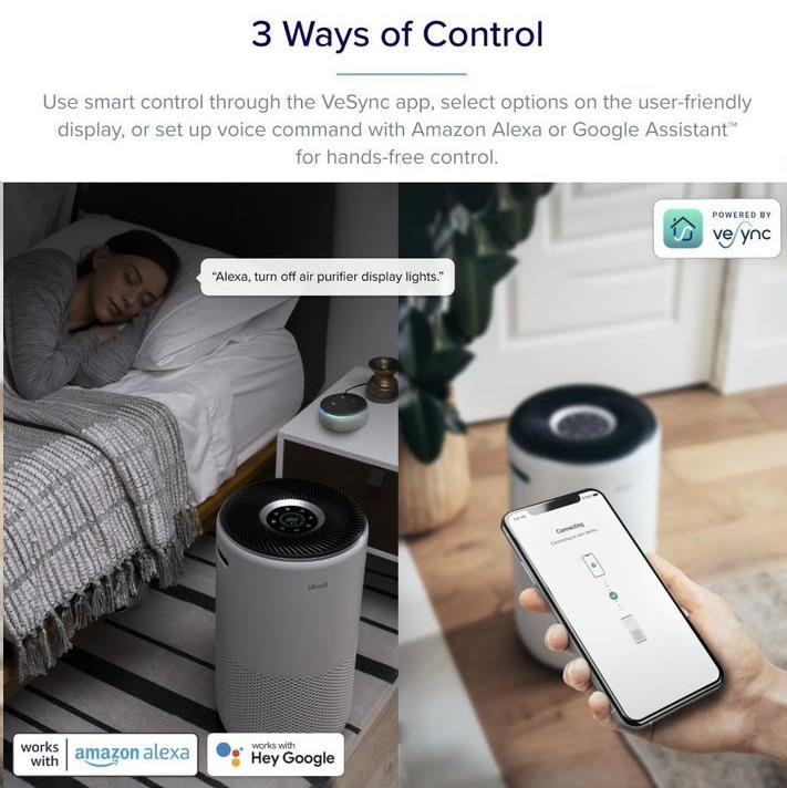 Chcete mít doma čistý vzduch jako prevenci před onemocněním horních cest dýchacích nebo jste alergik či astmatik? Chytrá čistička Levoit CORE Core 400S Smart díky vysoce kvalitní 3 vrstvé filtraci s filtrem HEPA H13 a maximální cirkulaci vzduchu patentované technologie VortexairTM odstraní až 99,99% škodlivých látek a nečistot, které by jste jinak dýchali. Ovládání čističky vzduchu je vskutku jednoduché. Můžete ji ovládat přímo na displeji nebo se nabízí ovládaní přes aplikaci na chytrých zařízeních Android nebo Apple (iOS). Čistička může být také ovládaná hlasem přes Alexu. V noci oceníte noční režim podpořen technologií QuietKEAPTM, díky které provoz produkuje hluk pouze 24dB a váš spánek tak nebude rušen.