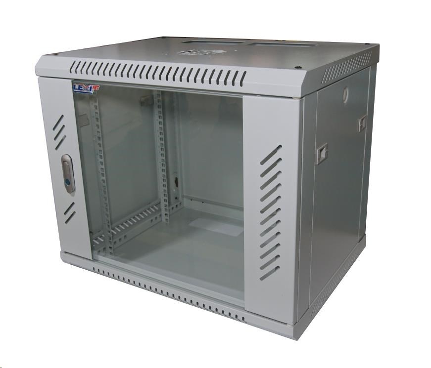 LEXI-Net 19" nástěnný rozvaděč 9U 600x450, nosnost 60 kg, skleněné dveře, rozložený, šedý