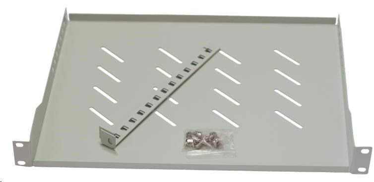 LEXI-Net 19" police s perforací 1U/650mm, nosnost 45kg, zadní nastavitelný úchyt, šedá