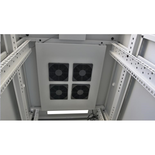 LEXI-Net 19" stojanový rozvaděč 27U 600x800 rozebiratelný, ventilační jednotka, termostat, kolečka, 600kg, sklo, šedý