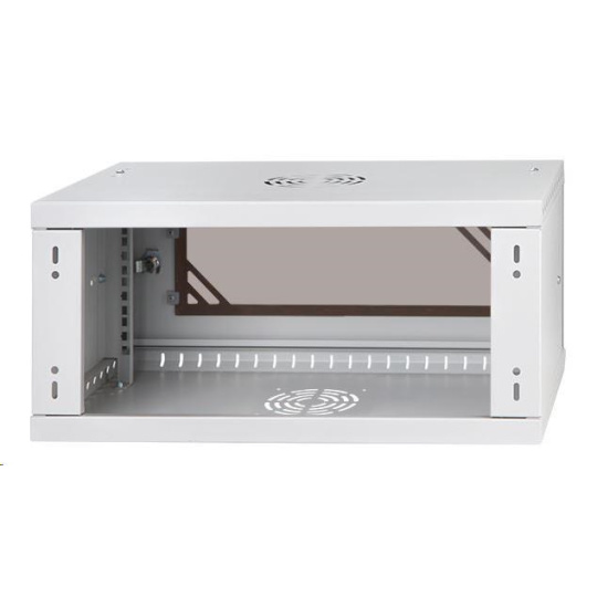 LEXI-Net 19" nástěnný rozvaděč Basic 4U 520x450, skleněné dveře, bez zad, rozložený, šedý