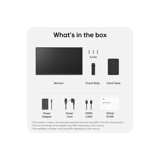- Základna stojanu 2. Šrouby 3. Napájecí adaptér 4. Napájecí kabel 5. Kabel HDMI 6. Průvodce nastavením