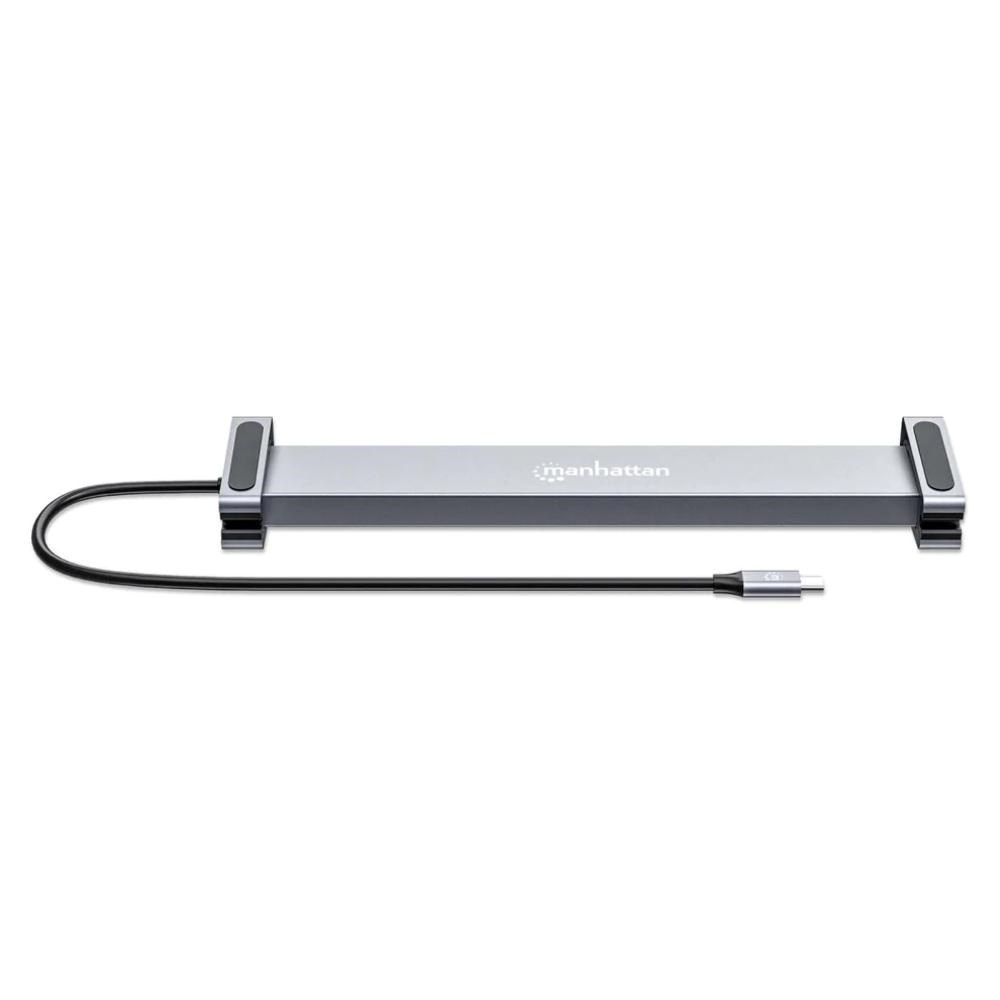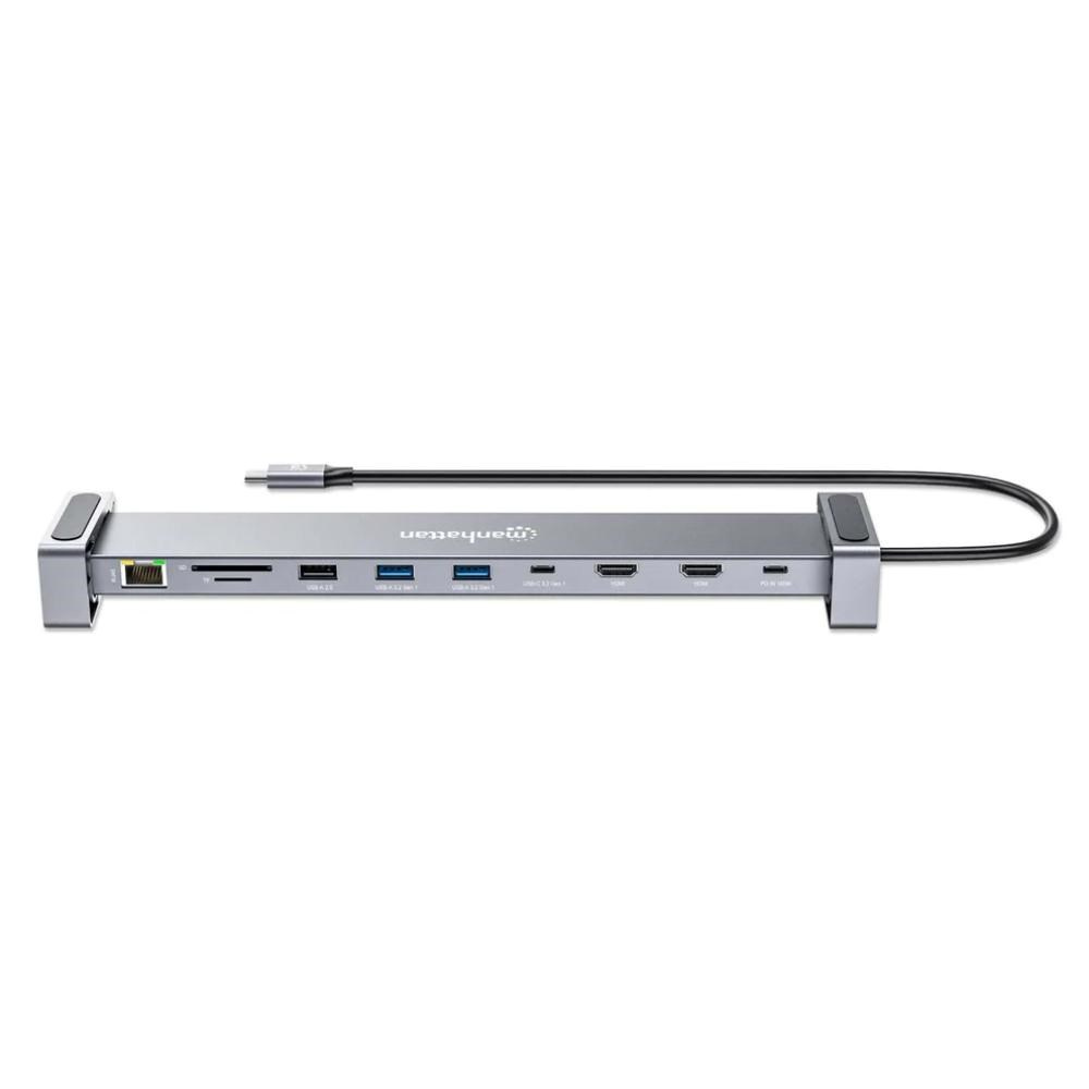 MANHATTAN Dokovací stanice USB-C 10v1, 2xHDMI, 2xUSB-C, 3xUSB, 1xRJ45, čtečka SD karet, šedá