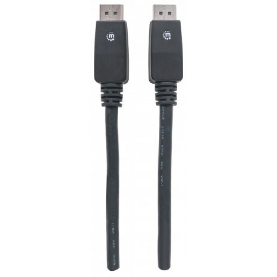 Manhattan DisplayPort Cables deliver both high-definition digital audio and video signals between desktop or notebook computers and an output device. The 20-pin connector is small and compact but offers 10.8 Gbps bandwidth, Deep Color and 24-bit, 8-channel uncompressed audio capability. It's ideal for use with DisplayPort-equipped computers, flat-panel displays, slim-profile devices and many consumer electronics including Blu-ray players and game consoles. Full foil and braided shielding, molded boots with strain relief, protective PVC jackets and gold-plated connections ensure that Manhattan DisplayPort Cables provide maximum conductivity and clear, crisp signal transmissions with reduced EMI interference and distortion.