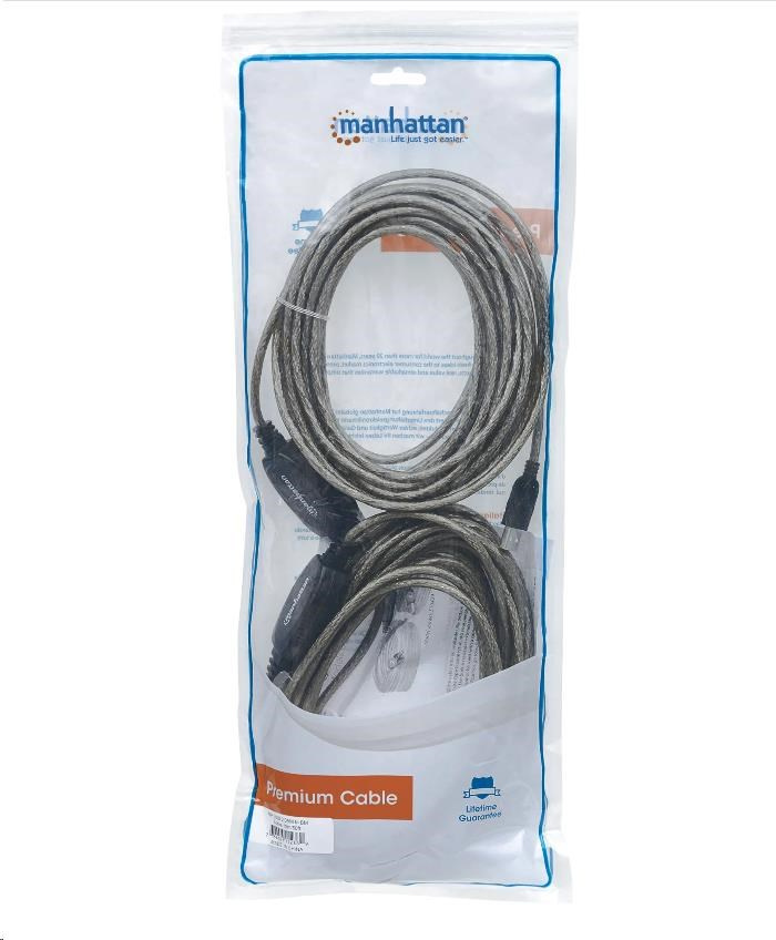 Easily overcome distance limitations to connect USB devices. Use the Manhattan Hi-Speed USB Active Cable to connect a computer USB port to a USB printer or other USB Type-B male device almost anywhere in the room. This single, non-daisy-chainable cable extension provides a convenient, uninterrupted 15 m (50 ft.) connection. The Manhattan Hi-Speed USB Active Cable with built-it repeater is fully-compliant with USB 1.1 and Hi-Speed USB 2.0 specifications to help devices operate at maximum performance. No external power or driver requirements are necessary. Plug-and-play capable and Windows/Macintosh versatility provide greater options in computer and peripheral placement and office layout.
