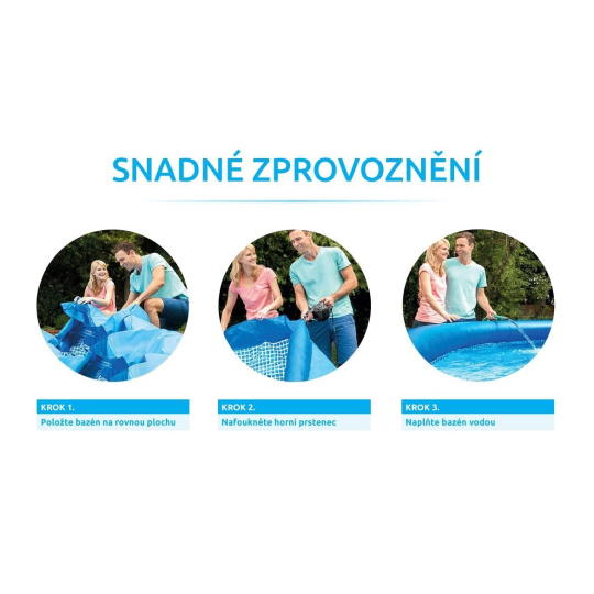 Bazén Tampa se řadí mezi neprodávanější a nejoblíbenější bazény v České republice. Koupání ve vlastním bazénu si může dopřát opravdu každý. Předností bazénu Tampa je nízká cena, snadná údržba i rychlé zprovoznění. Stačí jen připravit místo na bazén, rozvinout bazénovou podložku, bazén rozbalit, nafouknout horní límec a začít napouštět vodu. Stoupající voda sama bazén postaví. Od vybalení bazénu můžete do 10 minut napouštět vodu. Bazén je nutné po skončení bazénové sezony vyčistit, vypustit a uklidit na suché, nemrznoucí místo. Správnou údržbou prodloužíte životnost bazénu. Doporučujeme bazén po koupání zakrývat krycí plachtou. Pro snadné nafouknutí doporučujeme zakoupit ruční či elektrickou pumpu.