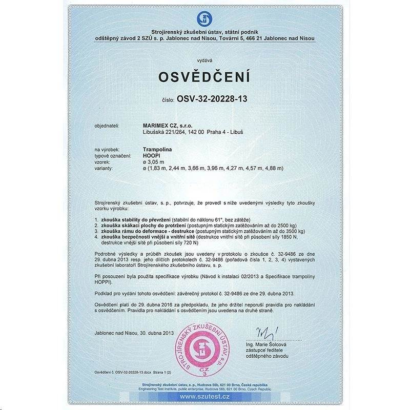 Všechny naše trampolíny splňují přísné bezpečností normy a jsou certifikovány zkušebnou Intertek. Bezpečnost trampolín je pro nás prioritou.