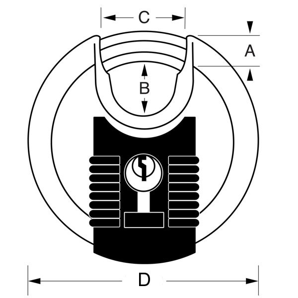 - Visací zámek o šířce 70 mm s tělem z nerezové oceli odolný proti korozi.