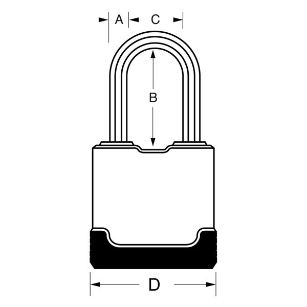 - Visací zámek o šířce 48 mm s tělem z laminované oceli s povrchovou úpravou odolnou proti povětrnostním vlivům.