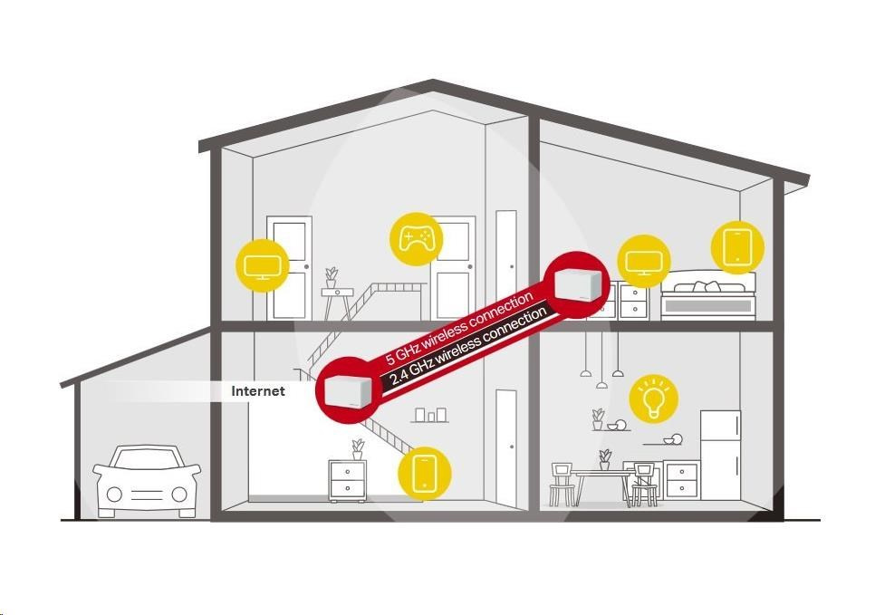 - Pokrytí celé domácnosti – pokrytí prostoru až 550 m2 (6 000 čtverečních stop) vysokorychlostní sítí Wi-Fi, která eliminuje mrtvé zóny Wi-Fi pokrytí ve vaší domácnosti.
