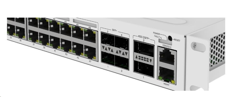 MikroTik Cloud Router Switch CRS354-48P-4S+2Q+RM, 650MHz CPU, 64MB, 1x10/100, 48xGLAN(PoE), 4xSFP+, 2xQSFP, vč. L5
