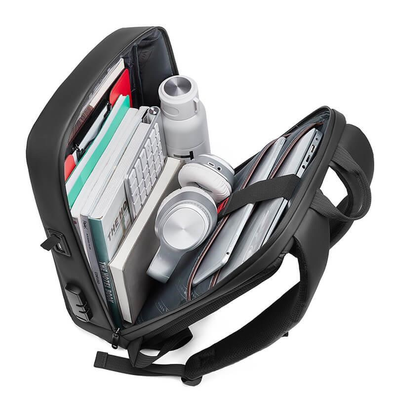 MYBALO Berlin je bezpečnostní městský batoh se zámkem na kód a pevným skeletem, které ochrání vaše uložené věci. Objem batohu činí 13 l. Najdete zde hlavní kapsu s přihrádkami na notebook do 15,6" a tablet do 9", kapsu na láhev a skrytou bezpečnostní kapsu. Díky pevnému skeletu a bezpečnostnímu zámku TSA je perfektním ochráncem pro vaše uložené věci, obavy s ním můžete hodit za hlavu. Pro nabíjení elektronických zařízení přímo z batohu můžete využít vestavěný USB port. Hlavní kapsu lze otevřít až o 180 stupňů, což je velmi praktické při ukládání i hledání věcí. Díky kvalitnímu polstrování je nošení velmi pohodlné. Pokud s batohem cestujete, můžete využít praktický držák na kufr. Batoh je vyroben z nepromokavého kvalitního materiálu s dlouhou životností. Ochrání tak všechny vaše věci před vlivy počasí a vydrží vám opravdu dlouho. Bezpečnostní batoh MYBALO Berlin je skvělou volbou do práce, do města, na pracovní cesty i pro volný čas.