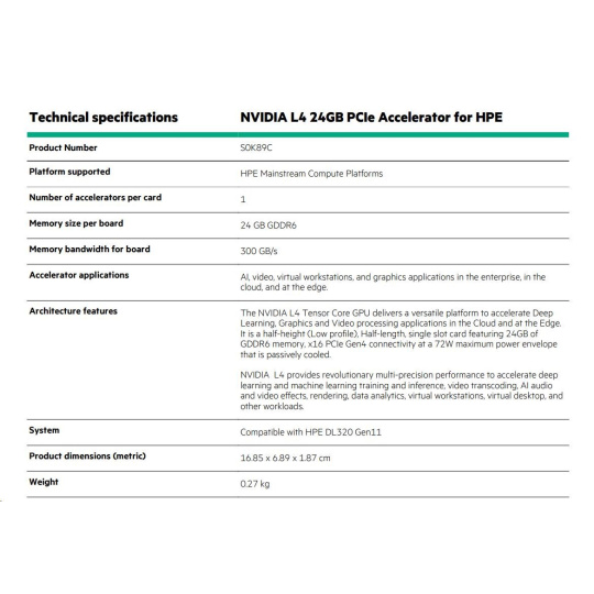 NVIDIA L4 24GB PCIe Accelerator for HPE