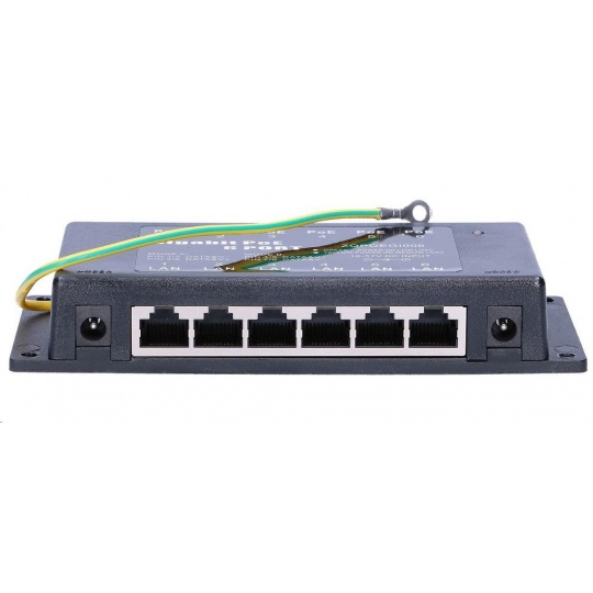 Panel integrující 6 pasivních Gigabitových PoE injektorů,Univerzální řešení pro vzdálené napájení většího počtu aktivních prvků s integrovaným extraktorem po UTP kabeláži.