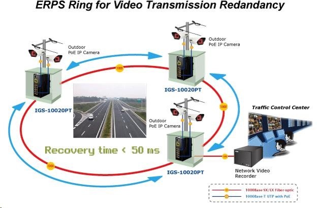 Planet IGS-10020PT PoE switch 8x 1000Base-T, 2x SFP, 802.3af 130W, IP30, -40 až 75°C, SNMP, IGMPv3, IPv6 Inteligentní přepínače pro průmyslový Ethernet jsou určeny do náročných provozních podmínek s velkým rozsahem pracovních teplot, nejistým napájením a častými otřesy. Zároveň poskytují vynikající možnosti vícenásobných propojení pro dosažení robustnosti propojení systémů s velmi nízkou dobou zotavení. IGS-10020PT je vybaven pro redundanci kromě dobře známé metody Spanning Tree (jejíž doba zotavení je v řádu sekund) především specializovanou funkcí "Redundant ring" která má dobu zotavení a nalezení nové cesty do 300ms. Jako PoE přepínač umožňuje přímo napájet až 8 koncových zařízení dle normy IEEE 802.3af, je tak ideálním prvkem pro aplikace se sníženou možností napajení. Přepínače řady IGS se snadno instalují na standardní DIN lištu nebo přímo na zeď a umožňují nasazení dobře známé Ethernetové technologie i v průmyslovém prostředí. Stejně tak jsou vhodné pro instalace do venkovně umístěných skříní s velkým kolísáním pracovních teplot (typicky bezdrátové a MAN ISP aplikace). Vlastnosti: - 8 portů 1000Base-T, Switching, Full Duplex (1000/2000 Mbps), Auto-Negotiation (10/100/1000 Mbps), automatická detekce přímý/křížený kabel na každém portu - na všechny implementace PoE IEEE 802.3af injektory se zatížitelností 15,4W/port, celkově až 130W - 2 porty SFP pro instalaci modulů 1000Base-SX/LX/BX nebo 100Base-FX - propustnost: sběrnice 20Gbps, provozně: 14,8Mp/s (64B) - podpora Jumbo Frame do 9kB, 8k MAC adres, buffer 4Mbity - 255 VLAN IEEE 802.1Q sítí, MAC nebo protocol based VLAN, VoIP VLAN - agregace linek "port trunking" IEEE 802.3ad LACP - IGMP v1,v2,v3 až do 256 multicast skupin, IGMP querier mode - 8-úrovní QoS prioritizace provozu dle portu, DSCP/ToS, 802.1p nebo 802.1Q značky - podpora Spanning Tree IEEE 802.1d, Rapid Spanning Tree IEEE 802.1w - IP/MAC ACL (access control list) do 123 pravidel, MAC/IP binding - DHCP snooping - port shaper - administrace Web/SNMPv3 s podporou zabezpečeného přenosu SSH/SSL - podpora IPv4/IPv6 - PoE scheduler pro možnost zapínání/vypínaní napájení podle časového plánu - pole LED indikátorů pro diagnostiku provozu - instalace na DIN lištu, montážní díl součástí - instalace na zeď, montážní díl součástí - krytí IP30 - napájení: 48V DC redundantní, připojení možné ze dvou různých zdrojů (nejsou součástí balení); vlastní příkon do 30W - ochrana proti přepólování, připojení napájení na svorkovnici, umístění na spodním panelu (nepřekáží při montáži na zeď) - přepěťová ochrana napájení do 6kV proti napěťovým špičkám (EFT) - přepěťová ochrana LAN portů do 6kV proti elektrostatickému náboji (ESD) - spínací poplachové relé (24V/1A) při výpadku primárního napájení - zařízení je odolné proti pádu (IEC-60068-2-32) z výšky 75cm na všechny dopadové části - zařízení je odolné proti vibracím (IEC-60068-2-6) 10-500-10Hz, 4x g, 0,5oct/min - zařízení je odolné proti přetížení krátkodobému zrychlení 50g, dlouhodobému 4g, (IEC-60068-2-27) - EMI/EMS, elektromagnetická kompatibilita a slučitelnost dle CE EN-6100-4-2,3,4,5,6 - elektrická bezpečnost dle CE EN-60950 - pracovní teplota -40 až 75°C, vlhkost do 95% - hmotnost: 1684g - rozměry: 152 x 107x 72 mm.