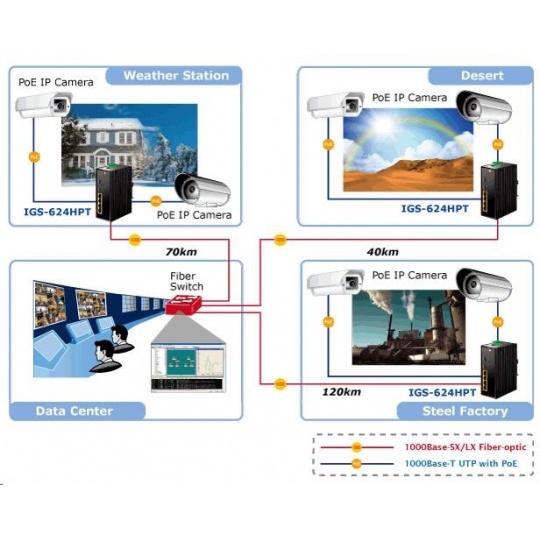 Planet IGS-624HPT, PoE switch 4x 1000Base-T, 2x SFP 100/1000Base-X, 802.3at 120W, DIN,IP30, -40 až +75st.C