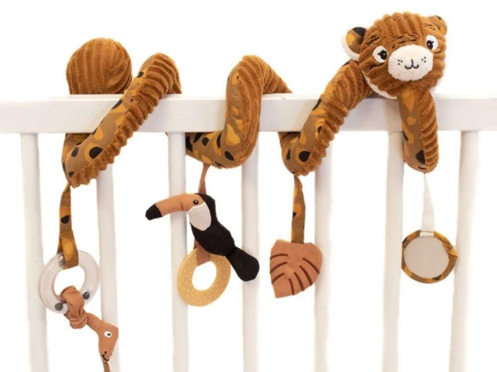 Originální spirála na postýlku, na kočárek nebo na hrazdičku, v podobě roztomilého tygra upoutá pozornost každého miminka. Úžasně heboučká spirála s chrastítkem, zrcátkem, kousátkem i s šustícím lístečkem stimuluje dětské smysly, rozvíjí jemnou motoriku a koordinací očí a rukou. Prohlédněte si originální spirálu, která vykouzlí úsměv na tváři dětem i rodičům..
