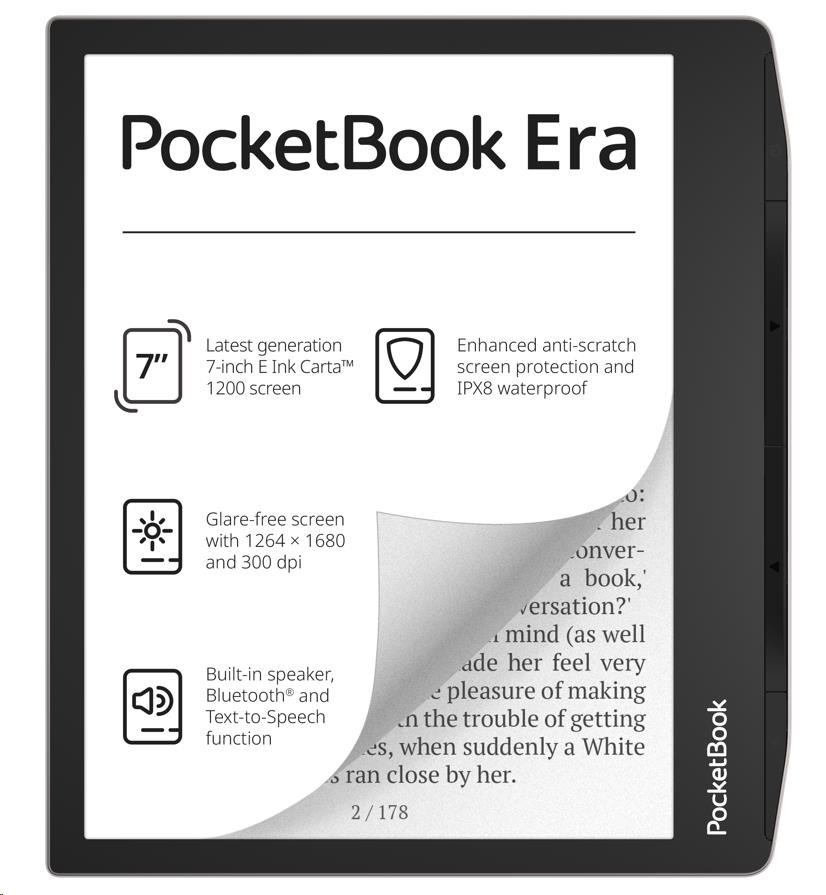 Čtečka Pocket Book 700 Era je vybavena 7" displejem E Ink Carta 1200, který funguje na principu elektronického inkoustu, takže při čtení šetří vaše oči. V porovnání se svým předchůdcem má dotyková obrazovka navíc o 20 % rychlejší dobu odezvy a o 15 % vyšší kontrast pro ještě pohodlnější čtení.