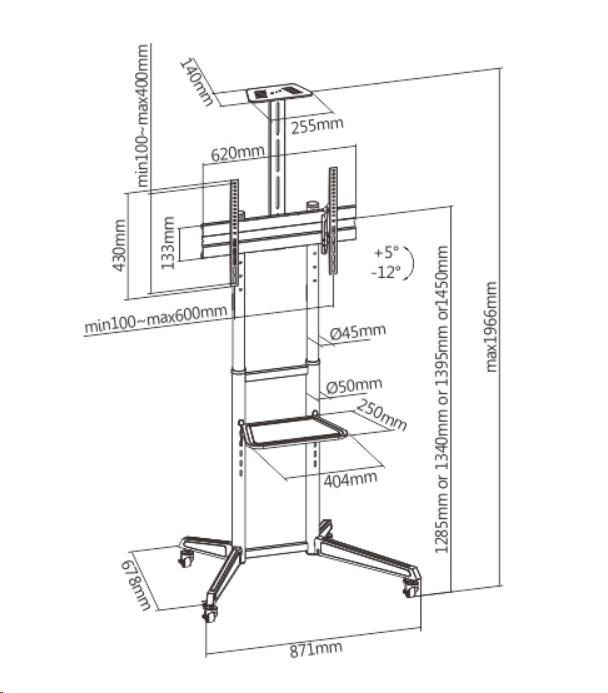 - Jednoduchá změna náklonu TV v rozsahu +5°~-12° bez použití nástrojů