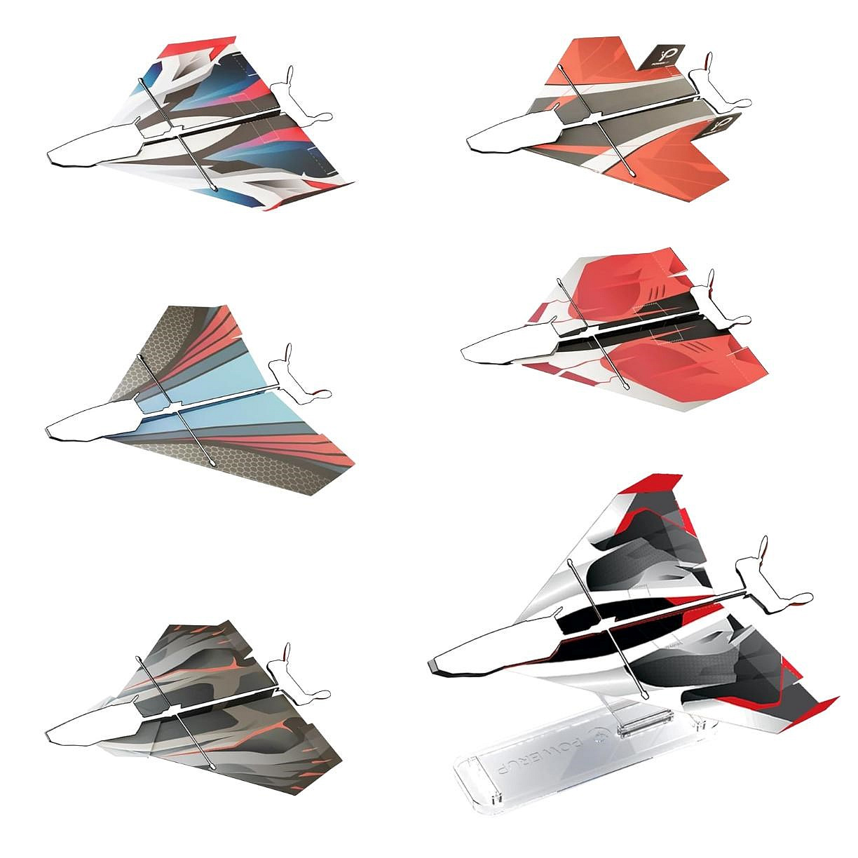 Balíček dvanácti precizních archů přináší agresivní vzhled a 6 odlišných aerodynamických tvarů, se kterými posunete manévrovatelnost svého letadla o úroveň výš. Ty nejpovedenější kousky si po letu hrdě vystavíte na poličku díky přiloženému designovému stojánku.