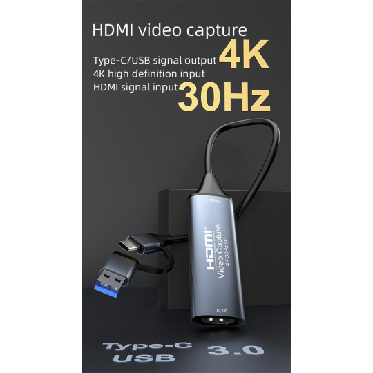 - Vysoké rozlišení nahrávání FULL HD 1080P při 60Hz, podporuje maximální vstupní rozlišení 3840 × 2160 při 30 Hz, maximální výstupní rozlišení FULL HD 1920 × 1080 při 60 Hz.