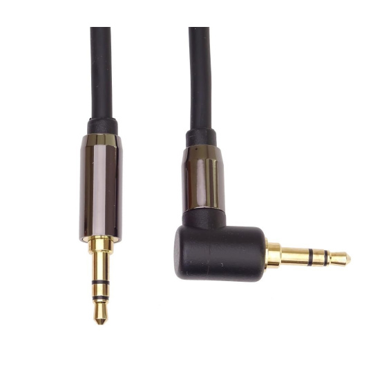 PremiumCord HQ stíněný kabel stereo Jack 3.5mm - Jack 3.5mm zahnutý 90° 5m