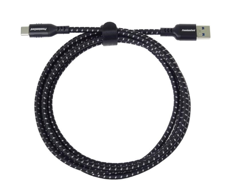 PremiumCord kabel USB-C - USB 3.0 A (USB 3.2 generation 1, 3A, 5Gbit/s) 2m bavlněný oplet a kovové hliníkové konektory