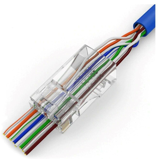 PremiumCord modulární RJ45 konektor (8P8C) pro kabely kategorie Cat6 je navržen pro čisté a spolehlivé zakončení síťových kabelů. Tento průchozí konektor usnadňuje krimpování: vodiče procházejí skrz konektor, takže lze snadno ověřit jejich pořadí a zajistit správný kontakt. Transparentní tělo umožňuje vizuální kontrolu zapojení vodičů, což minimalizuje chyby při instalaci.