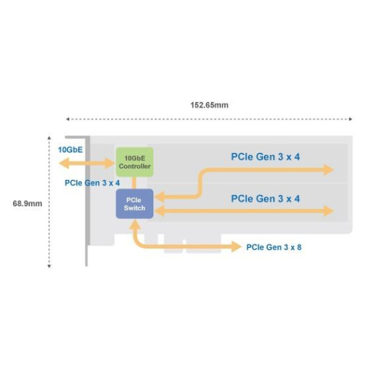 PCIe Gen3 rozšiřující karta s 2x NVMe SSD sloty a 1x 10GbE portem pro zvýšení výkonu