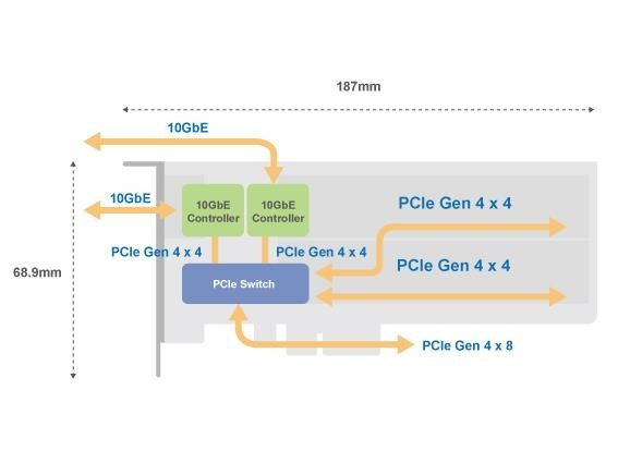 Rozšiřující karty s 2x M.2 PCIe Gen4 NVMe SSD a 2x 10GbE porty