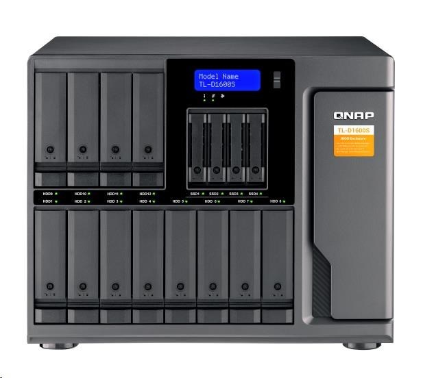 TL-D1600S je vybaven dvanácti 3,5“/2,5“ SATA 6Gb/s diskovými sloty a čtyřmi 2,5“ SATA 6Gb/s SSD sloty, navíc obsahuje i kartu QXP PCIe pro připojení expanzní jednotky pomocí kabelu SFF-8088 (nebo SFF-8644). Poskytuje spolehlivý výkon při čtení a zápisu pro snadné ukládání a zálohování dat.