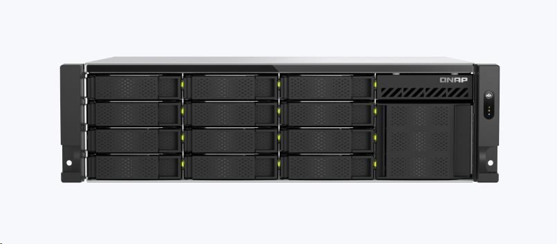 | Pozice pro diskové jednotky | 12 x 3,5-palcový SATA 6Gb/s, 3Gb/s + 4 x E1.S/M.2 PCIe Gen 3 x2 sloty Systém se dodává bez HDD. Seznam kompatibilních disků HDD najdete na stránce https://www.qnap.com/compatibility/ |