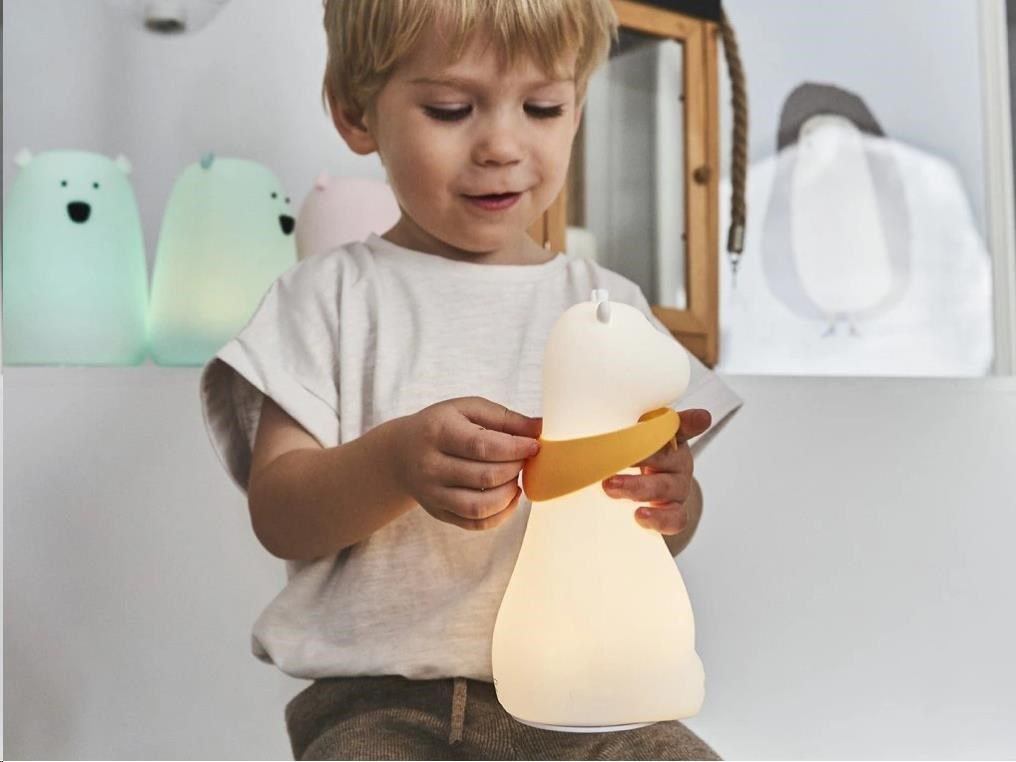 Dětská lampička v podobě roztomilé žirafy s barevnými šátky, vyrobená z měkkého, certifikovaného a zdravotně nezávadného silikonu, je ideální první lampičkou pro děti. Měkká lampička se stane věrným zvířecím kamarádek, který pomůže vašemu dítku s usínáním, doprovodí ho v noci na záchod a s nadšením s ním vyrazí za každým dobrodružstvím. Zapnout, vypnout lampičku, změnit barvu světla, je zcela jednoduché, stačí na lampičku poklepat.