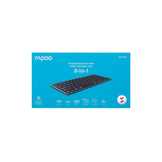 RAPOO Klávesnice UCK-6001 s 8v1 USB-C Hub, Drátová USB-C, CZ/SK, černá
