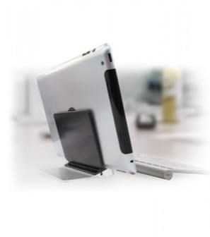 Stojánek pro tablety 7-11" v horizontální i vertikální poloze na stůl. Robustní hliníkové provedení ze dvou částí pro snadný transport a odolnost proti rozbití, opření tabletu na spodní hraně, stříbrný / černý..