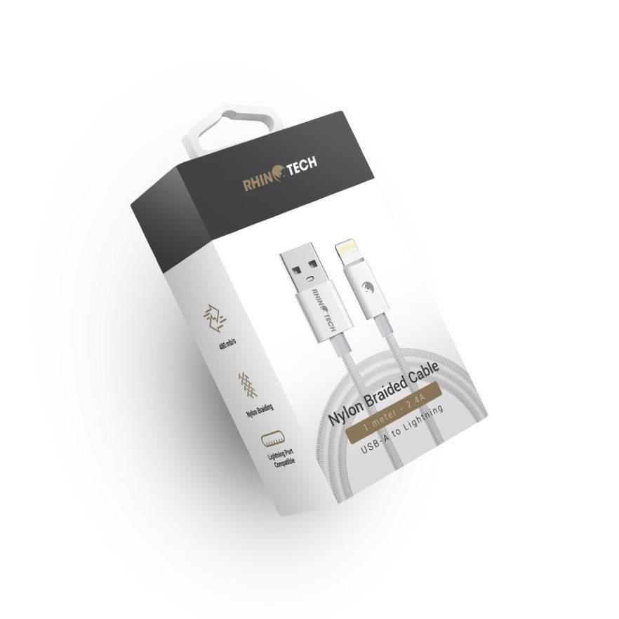 RhinoTech kabel s nylonovým opletem USB-C na Lightning 27W 1M bílá