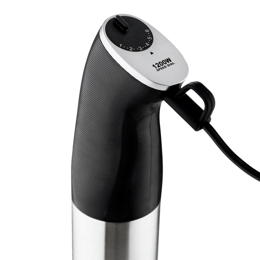 - Speciální kombinace ergonomie a vroubkovaného povrchu úchopové části mixéru zajišťuje pevný úchop v každé situaci
