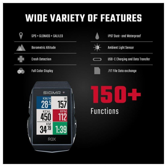 Nezáleží na tom, jestli jsou pro vás důležité super výkony nebo jen udržovat fyzičku či sdílet své aktivity s přáteli a rodinou. ROX 11.1 EVO s více jak 150 funkcemi se stává uživateli tréninkovým parťákem pro tréninky venku i na trenažéru. Kromě četných tréninkových funkcí nabízí také navigaci, strukturované workouty a připojení k externím sensorům. Můžete se tak stoprocentně koncentrovat jen na svůj výkon, zbytek zařídí ROX 11.1 EVO. Díky funkci LIVE SCREEN můžete svá data kdykoliv sledovat a analyzovat pomocí aplikace SIGMA RIDE. S navigací GPS a mnoha dalšími funkcemi posune váš trénink na nejvyšší možnou úroveň. Prvotřídní integrovaná funkce pro vaši bezpečnost CRASH ALERT odešle zprávu vašim nouzovým kontaktům v případě pádu. Chytrá oznámení Smart Notifications během jízdy informují o příchozích hovorech a SMS.